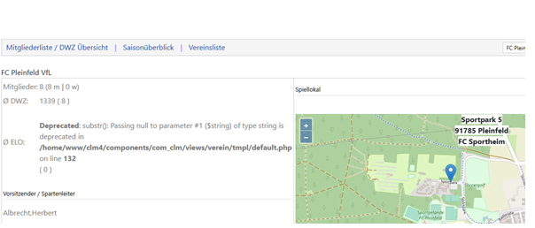 Bei Anzeige der Vereinsliste/DWZ-Zahl wird ein Fehler (deprecated) ausgegeben, wenn der ELO-Schnitt 0 beträgt.