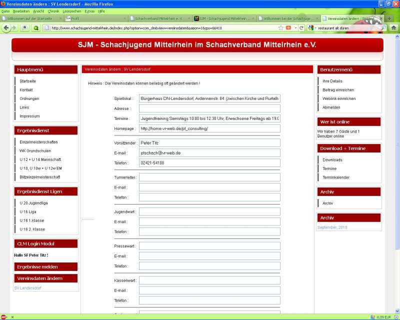bei mir steht aber noch "Spiellokal + "Adresse"