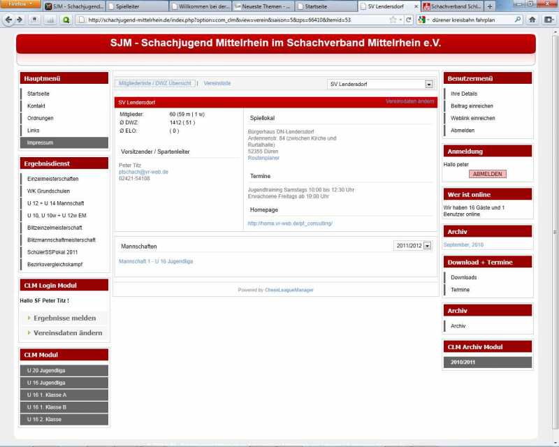 Ich habe einen zweiten Joomla User, den habe ich jetzt im CLM auch als Benutzer angelegt