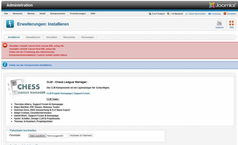 Die "restlichen" CLM-Module lassen sich problemlos installieren.