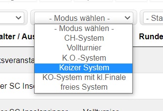 Zur Zeit ist es im CLM nicht möglich ein Turnier im Keizer-Modus abzubilden.