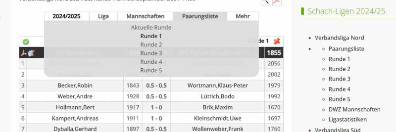 Nutze ich das Menue rechts (siehe Anhang), funktioniert alles ohne Probleme. Das Problem besteht schon länger, auch auf unserer Vereinsseite www.schachverein-sundern.de ist es das Gleiche.