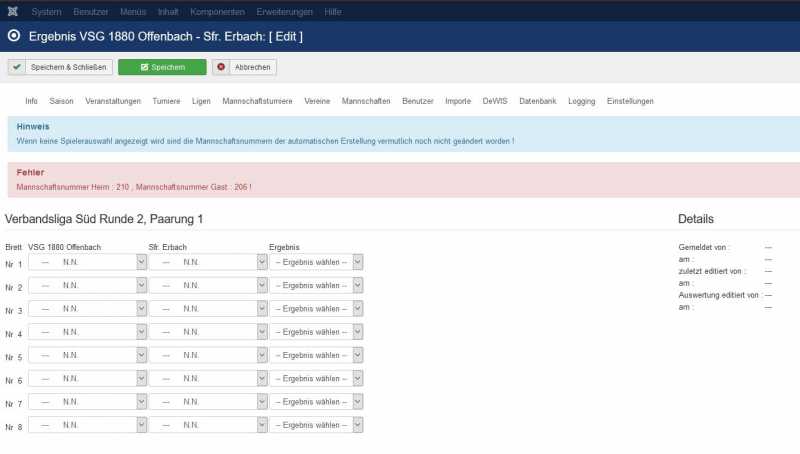 da bietet es sich an, das auch durch die Nummer der Mannschaft im Schachverwaltungsprogramm CLM auszudrücken. D.h. diese fortlaufend vergebenen Mannschaftsnummern dürfen angepasst werden.