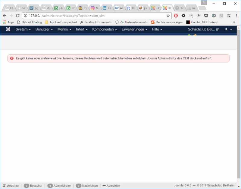 Es gibt keine oder mehrere aktive Saisons, dieses Problem wird automatisch behoben sobald ein Joomla Administrator das CLM Backend aufruft.