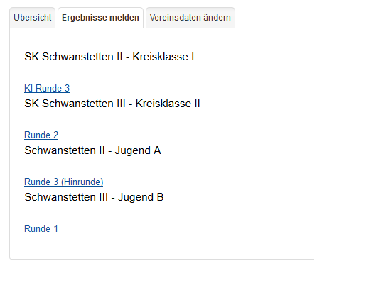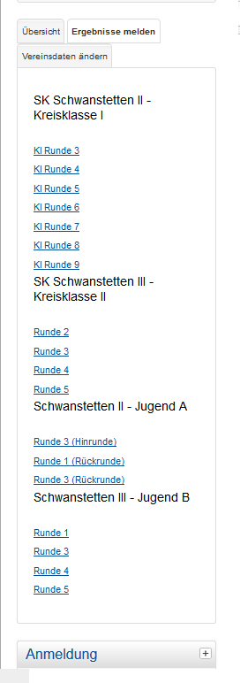 Werden mehrere Ergebnismeldungen zur Auswahl angeboten, ist die Zuordnung Mannschaft/Ligazum zugehörigen -eine Leerzeile entfernten- Link der Runde nicht intuitiv zu erfassen. Ein Link wird als Einheit mit dem sofort darunter stehenden Text gesehen. Dies ist verwirrend, besonders für neue Benutzer(innen). Link und zugehöriger Text sollten eine Einheit (Block, Zeile) bilden. Vorschlag siehe Anlage.