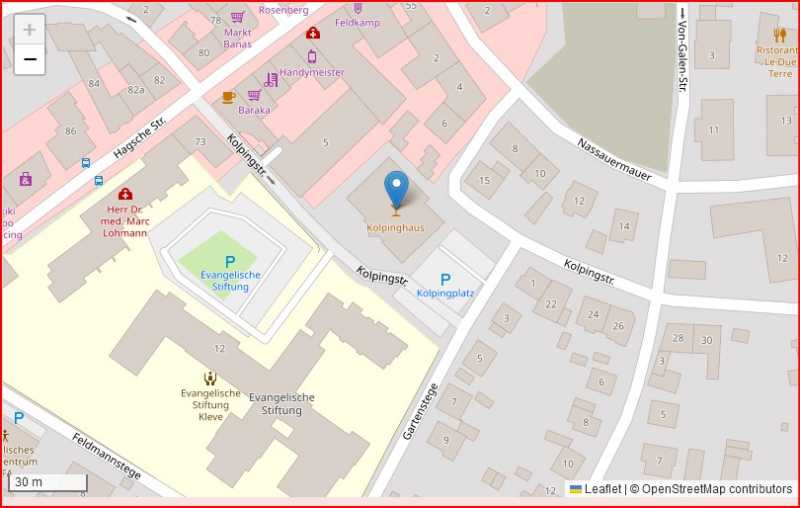 "Kolpingstraße 9, 47533 Kleve" würde bei falk.de so dargestellt.