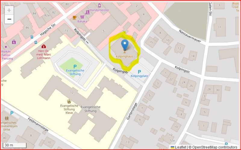 gebt bitte Kolpingstraße 9, 47533 Kleve als Adresse für das Spiellokal an.